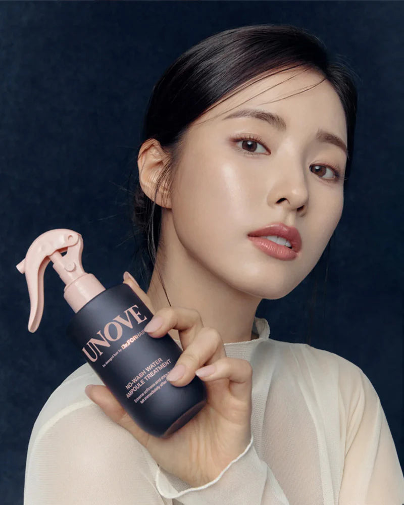 A lightweight, no-wash watery hair ampoule designed to deeply nourish, repair, and protect damaged hair without weighing it down. Formulated with 25 types of proteins and amino acids, this leave-in treatment helps strengthen weakened strands, reduce breakage and split ends, and restore smoothness and shine. Enriched with camellia japonica seed oil, argan oil, and kelp extract, it delivers long-lasting hydration while leaving hair soft, silky, and glossy. Finished with UNOVE’s signature floral musk scent for a luxurious hair-care experience.
